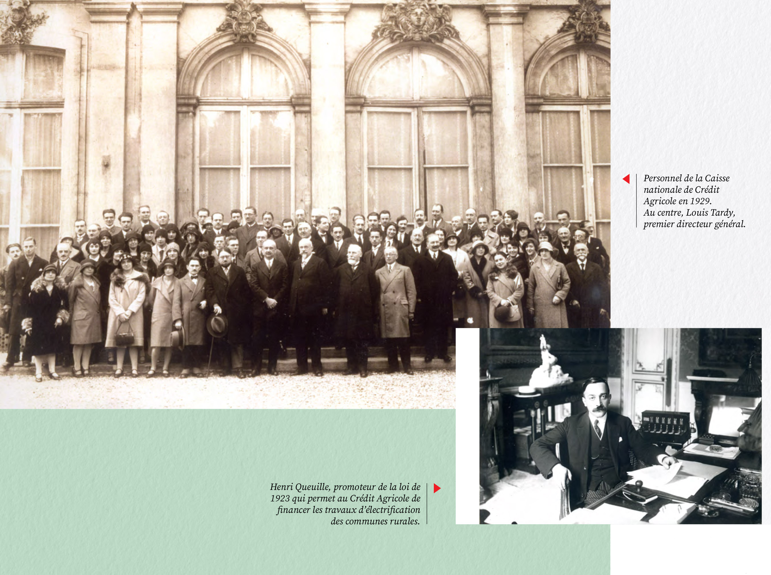 En 1923, l’État accorde au Crédit Agricole la possibilité de financer les communes rurales pour leurs travaux d’électrification. Cette ouverture est un vrai succès. Un grand nombre de villages peuvent alors s’équiper et, là encore, il s’agit d’une mesure qui permet de lutter contre la désertification des campagnes.