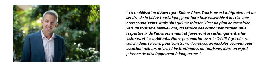 En mobilisant son expertise, le Crédit Agricole souhaite contribuer à l’objectif d’Auvergne-Rhône-Alpes Tourisme d’intégrer le top 5 des principales destinations touristiques européennes.
