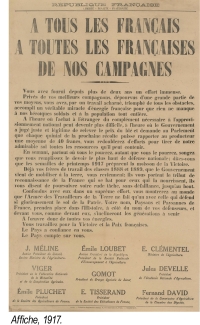 Tout d’abord, dans un « appel à tous les Français et à toutes les Françaises de nos campagnes », en 1917, différentes personnalités dont les quatre ministres de l’Agriculture qui se sont jusqu’alors succédé dans la Grande Guerre, incitent les Français à produire plus pour soutenir l’effort de guerre. Le Crédit Agricole, en plus de son rôle de prêteur classique à l’agriculture, intervient alors comme financeur de diverses mesures. Pour la première fois, il prête aux communes et aux départements, ainsi qu’aux coopératives, pour des travaux de remise en culture des terres abandonnées à cause des combats. Cependant, du fait de l’indisponibilité de la main d’œuvre, cette mesure sera plus efficace une fois la paix revenue.