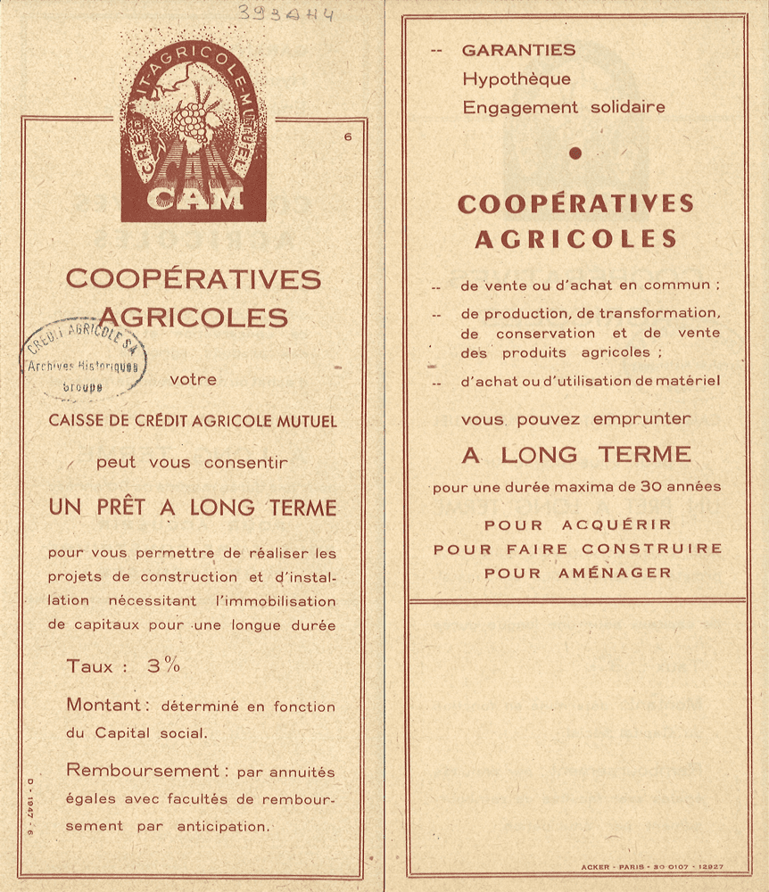 Prospectus du Crédit Agricole à destination des coopératives agricoles (1947).