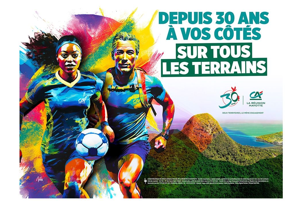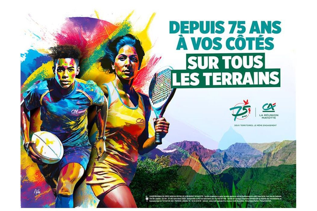 Cet été, la Caisse régionale a déployé une nouvelle campagne sport inédite, dynamique et 100 % locale en lien direct avec ses 75 ans d'engagement à La Réunion et ses 30 ans de présence à Mayotte. Cette campagne a permis de valoriser son engagement et son soutien actif au monde associatif et sportif.