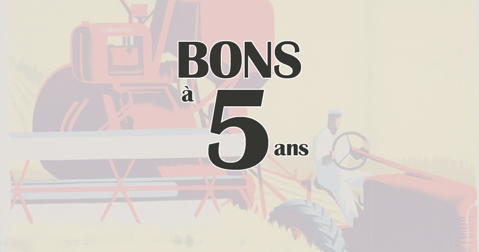 En 1942, l’état de guerre ne permet pas à l’agriculture française d’investir pour se moderniser et se développer. Pire, les destructions et la désorganisation font chuter la production globale. En parallèle, le Crédit Agricole voit un désengagement de l’Etat qui abaisse progressivement les financements qu’il apportait traditionnellement à l’institution via les avances de la Banque de France. Le Crédit Agricole se voit donc contraint d’inventer un nouveau produit pour financer les besoins de l’agriculture. C’est donc dans ce contexte qu’est créé le fameux bon à 5 ans qui, en plus de son apport indéniable pour accroître ses capacités de financement, sera pour le Crédit Agricole un puissant outil de transformation.