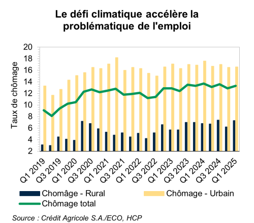 Bien sûr, les différents chocs ces dernières années ont amplifié les pressions. En particulier, le stress hydrique y participe largement puisque le secteur agricole détruit plus rapidement les emplois que les autres secteurs n’en produisent en zones urbaines. Mais ce n’est, en fait, qu’un accélérateur d’un problème structurel de fond, auquel s’ajoutent l’amélioration de la productivité du secteur agricole, qui diminue son intensité en main-d’œuvre, et la transition de l’économie vers les services.