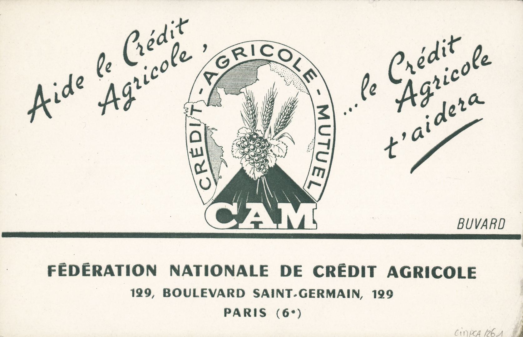 Promotional Fédération Nationale du Crédit Agricole (FNCA) blotter (1950s). FNCA was set up in 1945 as an association to represent the Regional Banks in their dealings with the public authorities and CNCA. It was revamped in 1947 and would play a key role in training staff and extending Crédit Agricole’s areas of expertise.