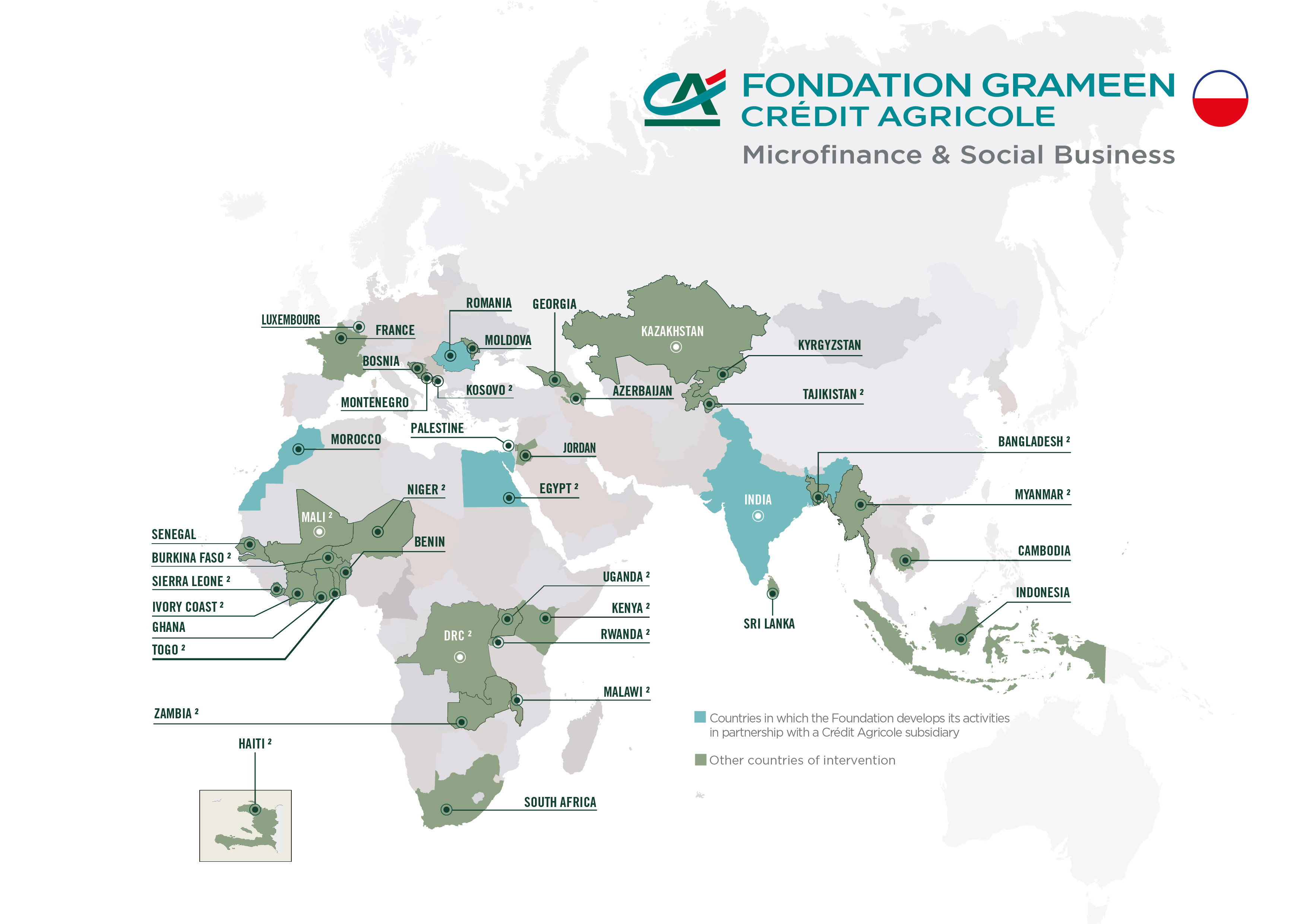 Created in 2008 at the joint initiative of Crédit Agricole’s Directors and Professor Yunus, founder of the Grameen Bank and 2006 Nobel Peace Prize laureate, the Grameen Crédit Agricole Foundation is a cross-business actor committed to contribute to the fight against poverty and inequalities by promoting financial inclusion and social impact entrepreneurship. Investor, lender, technical assistance coordinator and Fund advisor, the Foundation finances and supports microfinance institutions, enterprises and projects that promote inclusive finance and the development of rural economies around the world.