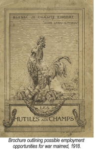 A larger measure was taken in 1918, before the end of the war. This is the possibility for Crédit Agricole to grant low-interest loans to disabled war victims so that they can acquire, develop or reconstitute a small holding. On this occasion, Crédit Agricole is partnering with the Labour Department of the Ministry of Agriculture to produce a brochure that shows disabled people how to return to work according to their disability. This action by Crédit Agricole is fully in line with its objective of combating rural exodus and boosting French agriculture.