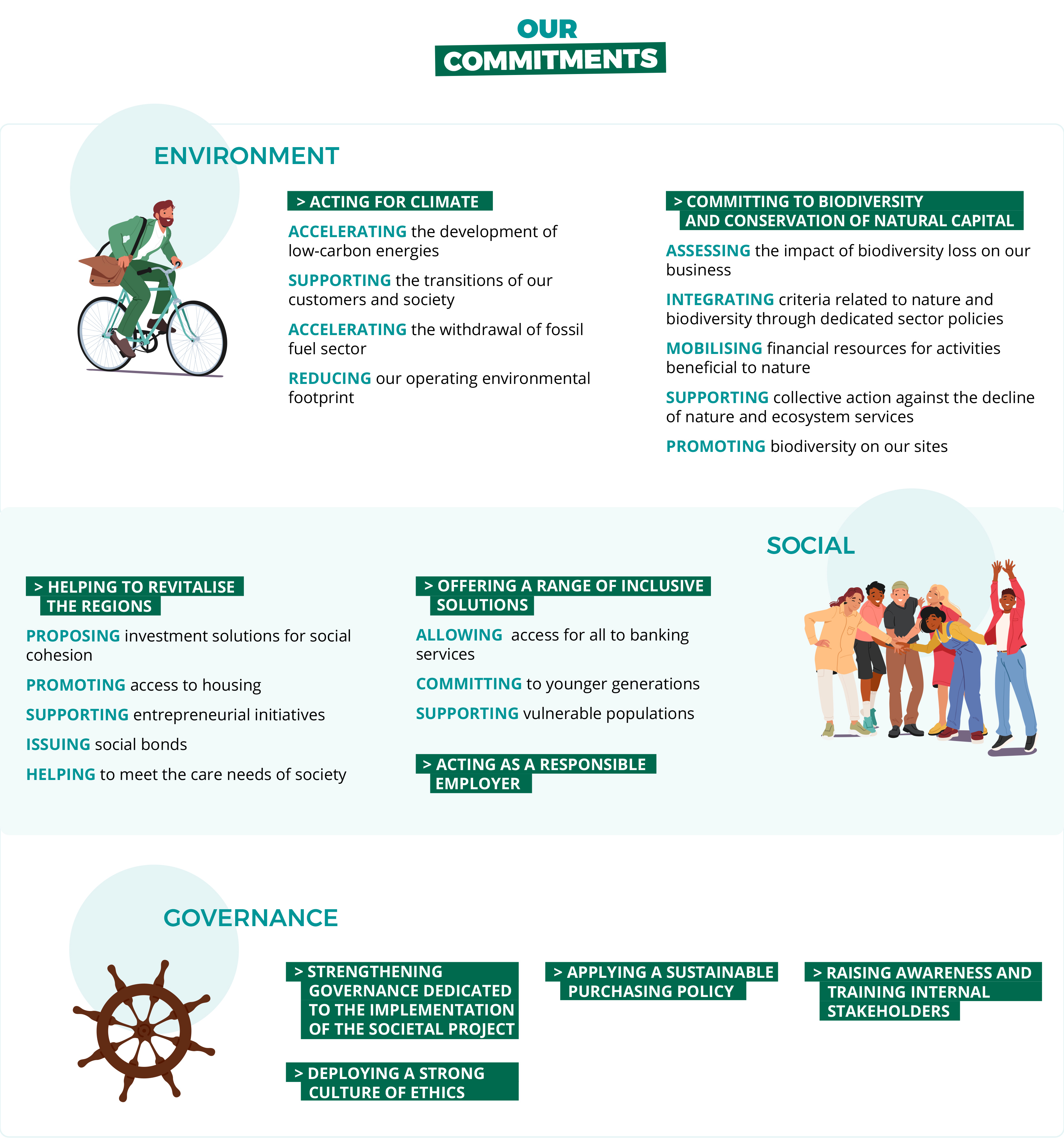 Crédit Agricole implements its Societal Project through a CSR strategy that is integrated into its business model. With governance of environmental and social impacts at the highest level and the integration of ESG criteria into processes, it is transforming all the group's business lines. The Group's CSR strategy is fully in line with the 17 Sustainable Development Goals (SDGs).